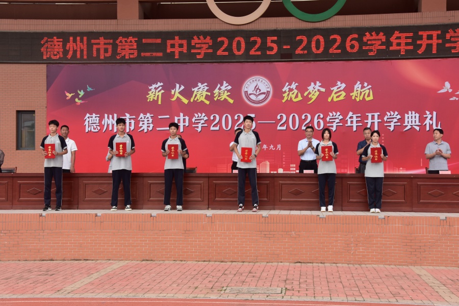 典礼上隆重表彰了德州市高中生辩论赛优秀选手和指导教师,德州二中男子篮球、足球队和指导教师,山东省中小学生体育联赛跳远、100米、400米获奖运动员及指导教练,全国青少年科技教育成果一等奖、全国青少年无人机大赛一等奖获得者及指导教师,德州市中小学生艺术展演获奖学生及指导教师,期末考核优秀班级,省市三好、优干,学生奖学金获得者。