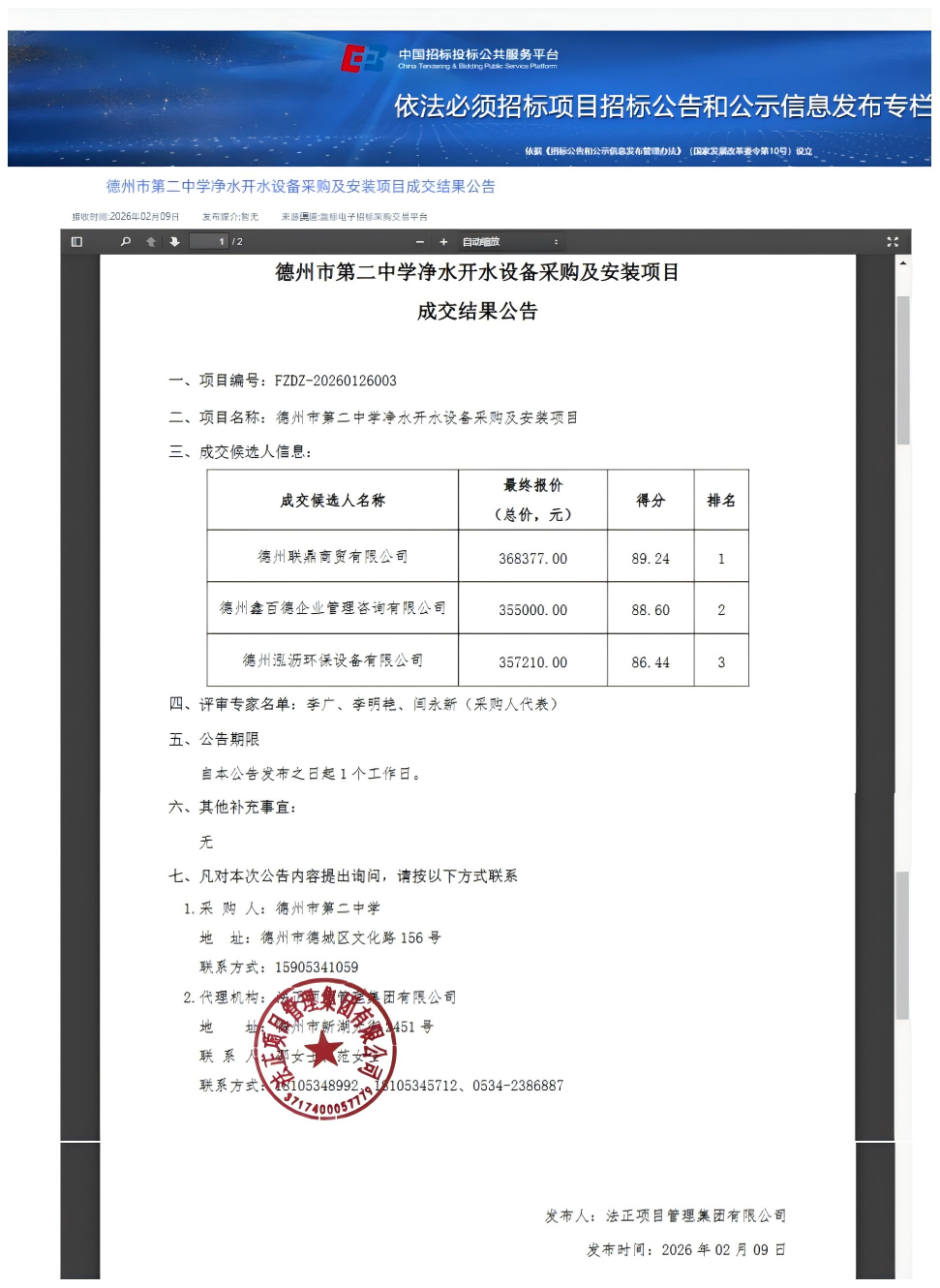 2.代理机构:法正项目管理集团有限公司
