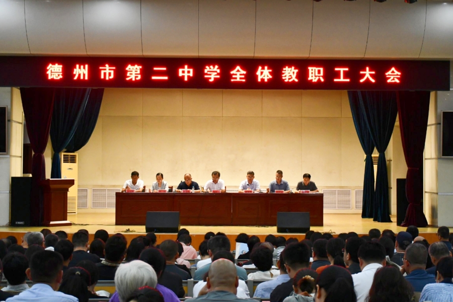暑退九霄净,秋澄万景清。为确保新学期各项工作平稳有序、高效推进,引导全体教职工以饱满的精神面貌投入工作,8月30日,德州二中召开2025-2026学年度第一学期全体教职工大会。会议由党委副书记高爱春主持,学校领导班子及全体教职工参加。