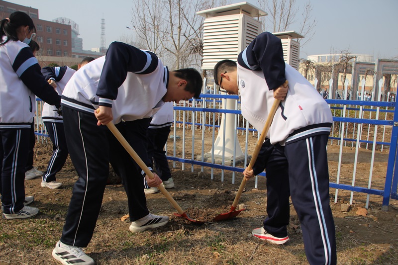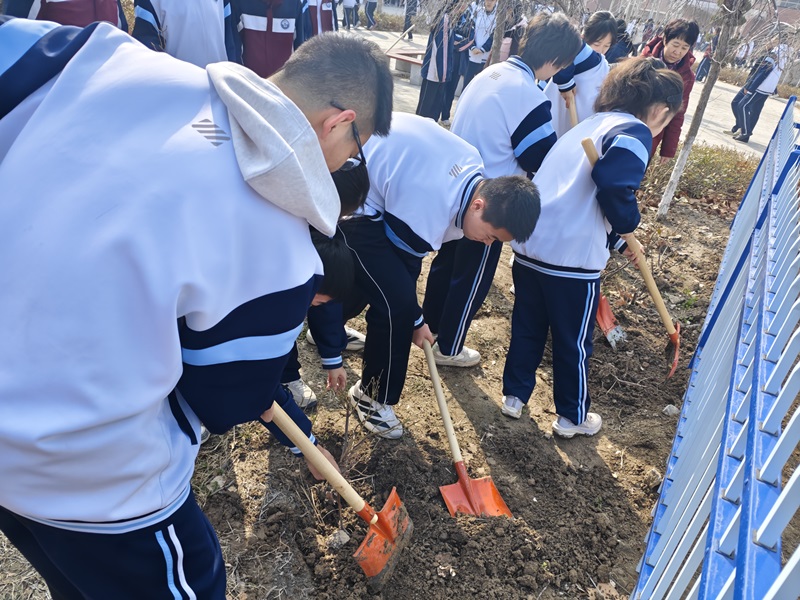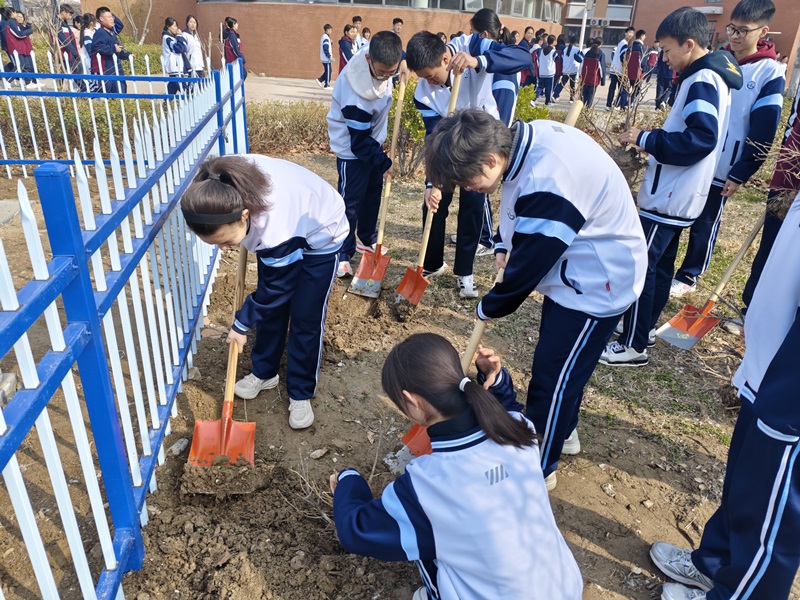 活动现场,同学们热情高涨、干劲十足。大家手持铁锹,分工协作,挖坑、扶苗、培土、浇水,每一个步骤都认真细致、有条不紊。阳光下,同学们弯腰挥锹的身影与娇嫩的树苗交相辉映,构成了一幅生动的劳动画卷。经过一番辛勤劳作,一株株新栽下的苗木扎根泥土,在春风中挺立,为校园增添了一抹生机。
