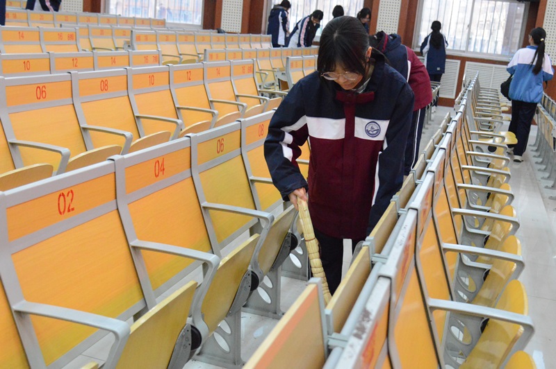 动员大会结束后,志愿服务活动全面展开,志愿者们分成多个小组,分工明确、配合默契,有条不紊地开展各项志愿工作,用实际行动践行雷锋精神。在学校报告厅,志愿者们携带抹布、扫帚、拖把等清洁工具,认真清扫地面垃圾、擦拭桌椅、整理座椅,不放过任何一个卫生死角,经过大家的共同努力,报告厅变得干净整洁、秩序井然,为师生们开展各类活动营造了舒适的环境。在校园橱窗旁,志愿者们细心擦拭橱窗玻璃,清除表面灰尘和污渍,梳理橱窗内的宣传内容,让校园橱窗重新变得明亮整洁,更好地发挥了宣传教育作用,传递校园正能量。针对校园内外电动车停放杂乱的问题,志愿者们耐心整理乱停乱放的电动车,按照指定区域有序摆放,规范停车秩序,不仅改善了校园环境面貌,也为师生出行提供了便利,用细微行动践行文明新风。活动过程中,志愿者们不怕脏、不怕累,始终保持着高涨的热情,每一个动作都认真细致,每一处身影都彰显着青春担当,他们用汗水浇灌奉献之花,用行动诠释雷锋精神,成为校园里一道亮丽的风景线。