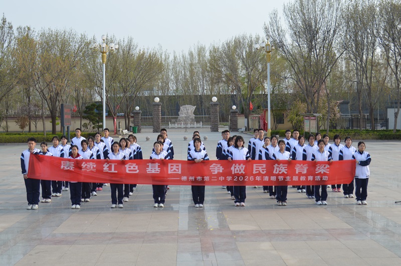 清明寄哀思,忠魂永传承。为深切缅怀革命先烈,厚植青年学生家国情怀,赓续红色血脉,2026年3月30日,德州市第二中学部分学生代表走进德州市革命烈士陵园,开展“赓续红色基因 争做民族脊梁”清明节主题教育活动,在庄严肃穆的氛围中接受爱国主义与革命传统的精神洗礼。